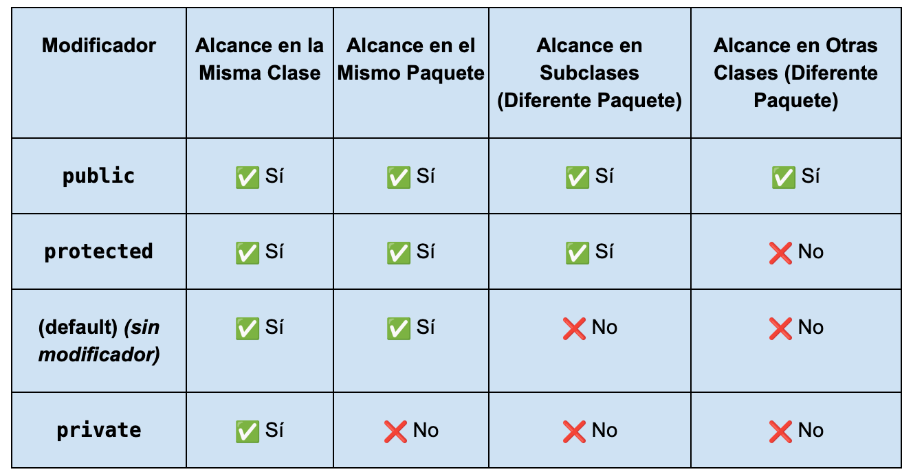 Encapsulación: Aprende a proteger tus datos y mantener la seguridad de tus objetos mientras controlas cómo interactúan entre sí. Esto es el pan de cada día en tu trabajo de Java, debes conoces los ámbitos que pongo abajo.